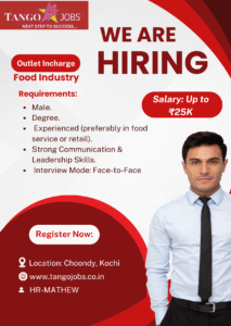 Outlet Incharge – Food Industry | Choondy, Kochi